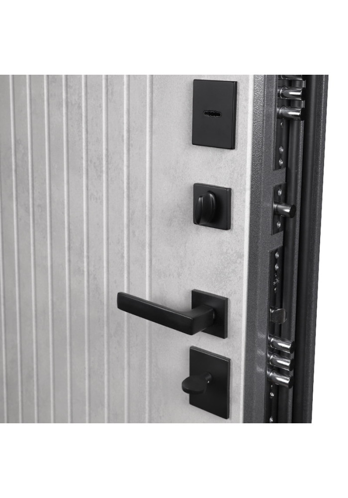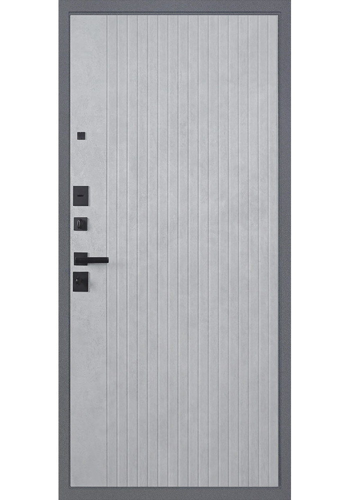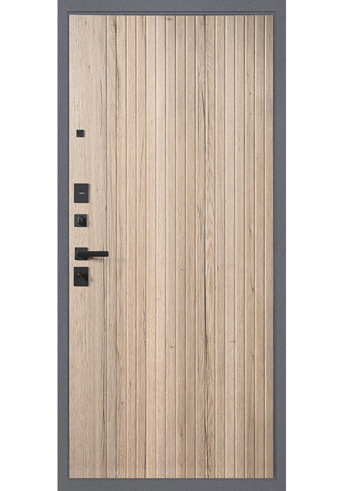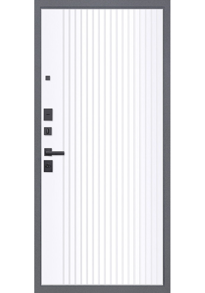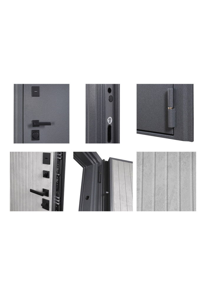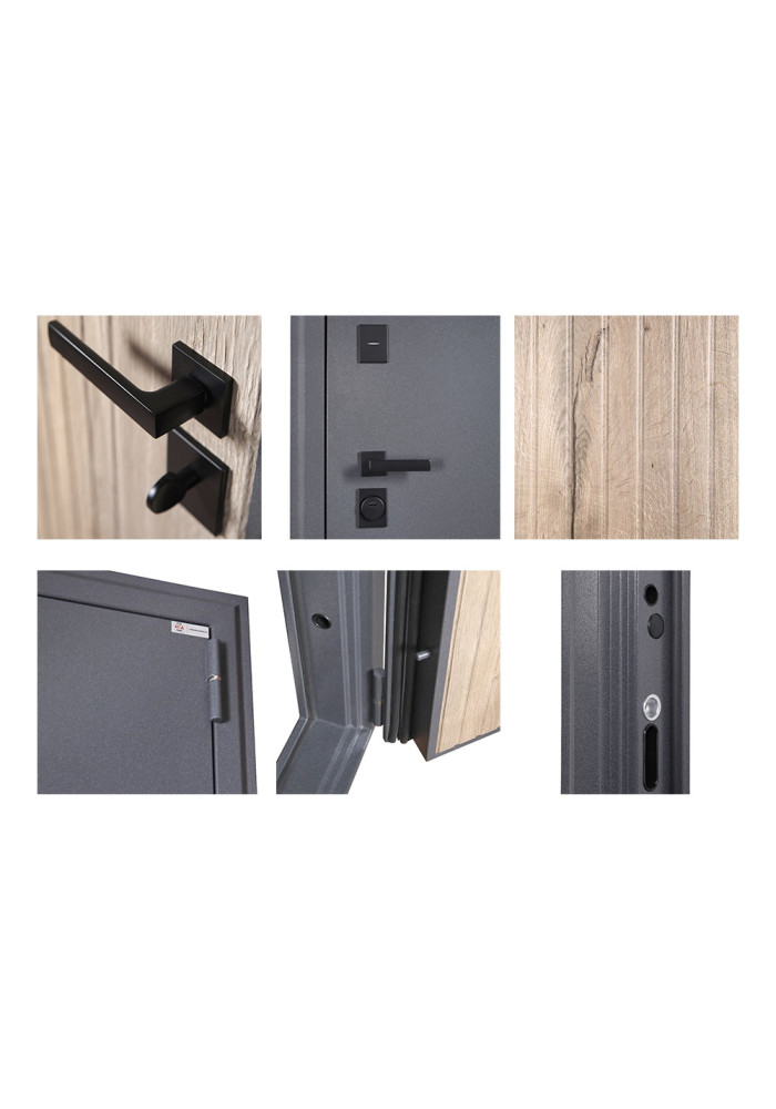 • Наружный лист металла: Лист металла 1,5 мм. Порошковое покрытие "букле графит". Наличник фигурный